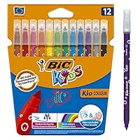 BIC Kids Kid Couleur Feutres de Coloriage à Pointe Moyenne - Couleurs Assorties, Etui Carton de 12